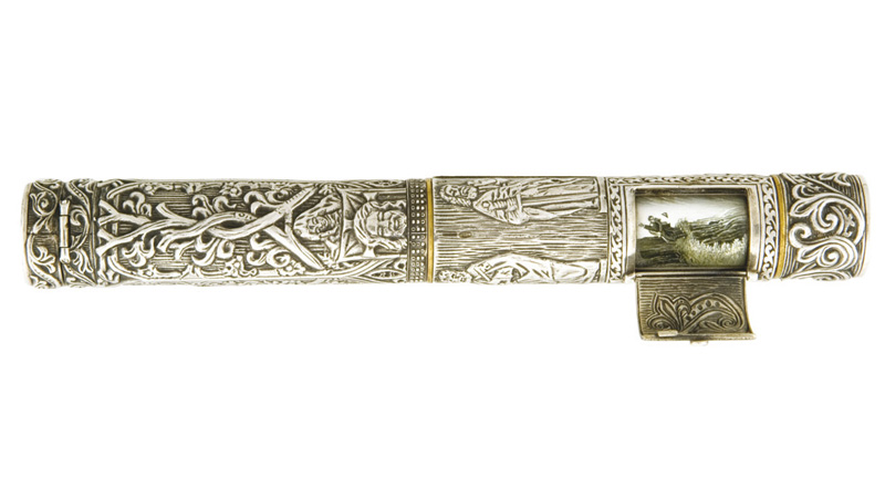 Krone honors the work of Sir Arthur Conan Doyle’s Sherlock Holmes with a superb writing instrument. This unique solid sterling silver pen is intricately detailed with three-dimensional elements, to help you solve the mystery.