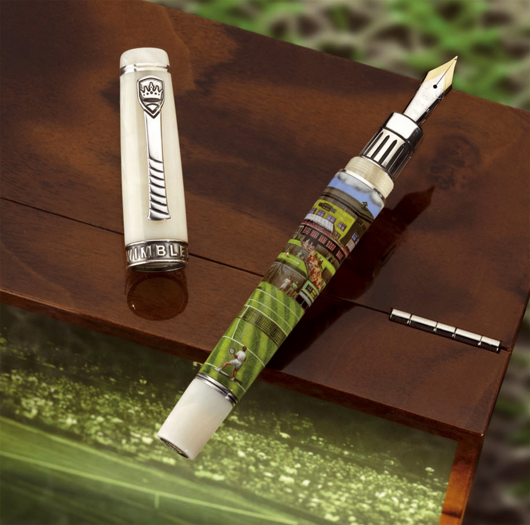 For over 130 years, the name Wimbledon has been synonymous with the world’s ultimate tennis championship. Krone presents its Limited Edition writing instrument honoring Wimbledon, its long tradition and the art of tennis. Hand painted in luxurious vintage color, the barrel showcases the beauty of Wimbledon’s famous grass court while capturing the play of a spirited match. A uniquely crafted nib casing is inspired by The Championships’ trophy.